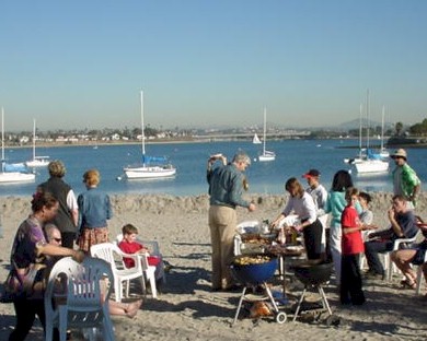 Enjoying the BBQ on the beach in front of our house.